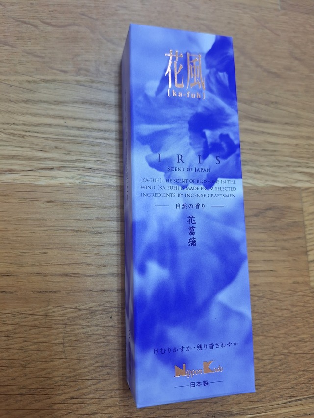 自然の中の生命の輝きを感じさせ、心澄みわたるお線香「花風」 四百数十年にわたり受け継がれた薫香への探求と最新の調香技術の融合から生まれた、輝くような自然の香りにこだわった、けむりの少ないお線香です 雨上がりのきらきらとした空気の中で、静かに咲きそろう花菖蒲をうつすようなグリーンフローラルの香りです 恐れ入りますが箱の色は写真よりも鮮やかな紫色です お線香サイズ/約140mm 商品サイズ/高さ約155mm×幅約49mm×奥行約24mm 箱含む重量/約80g 内容量/約60g 燃焼時間/約25分(立てた場合) 主原料/タブ粉、香料