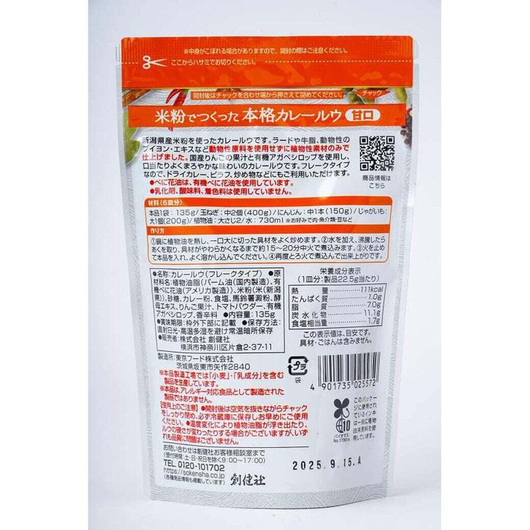 米粉でつくった本格カレールウ 甘口 135g 創健社