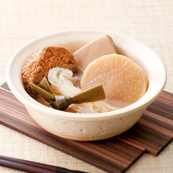 天然の旨みをいかし、じっくりと煮込んだ 大根、がんもどき、高野豆腐、しらたき、結び昆布の5種類入り