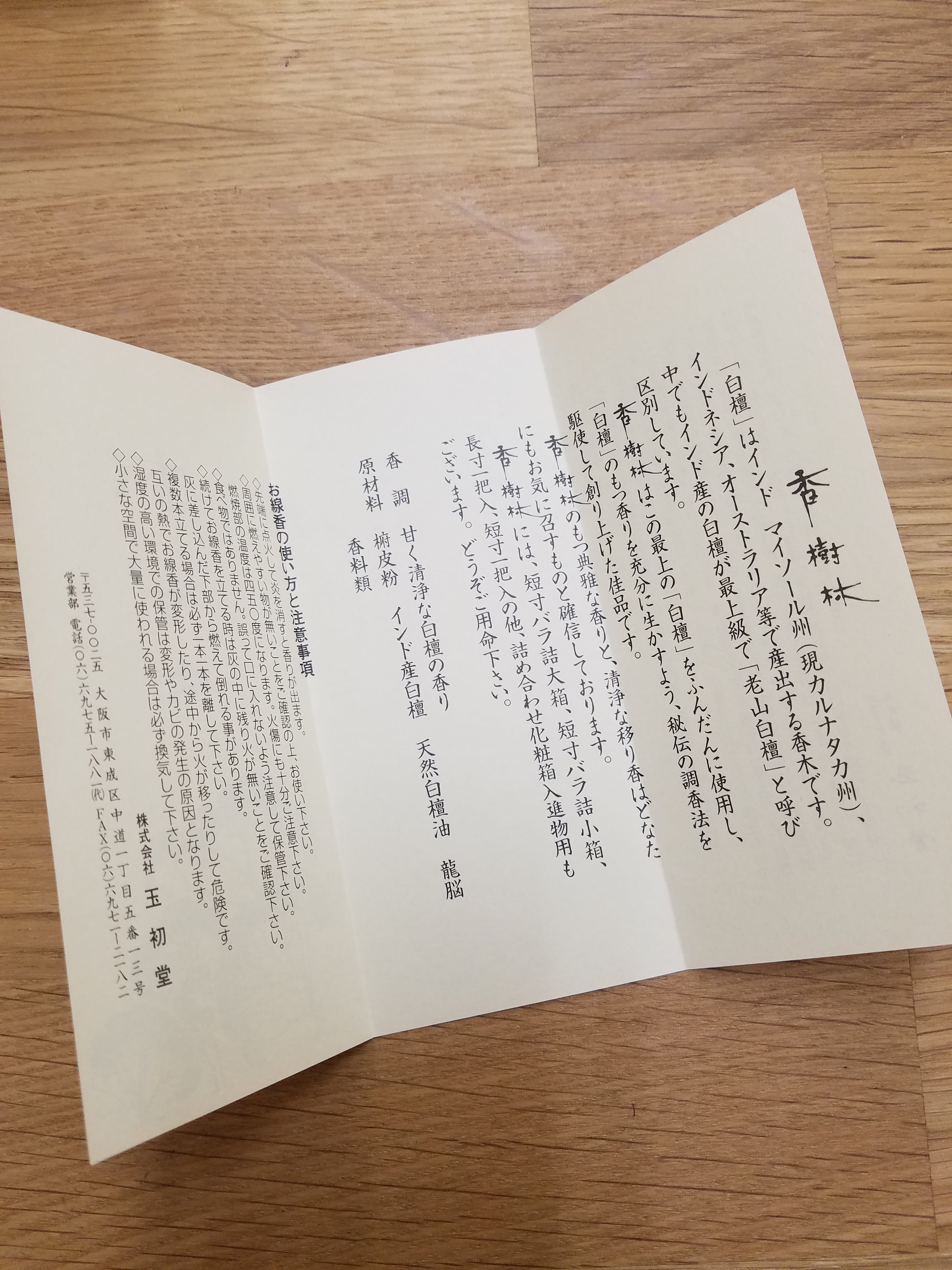 原材料:椨皮粉、インド産白檀、天然白檀油、龍脳、香料類